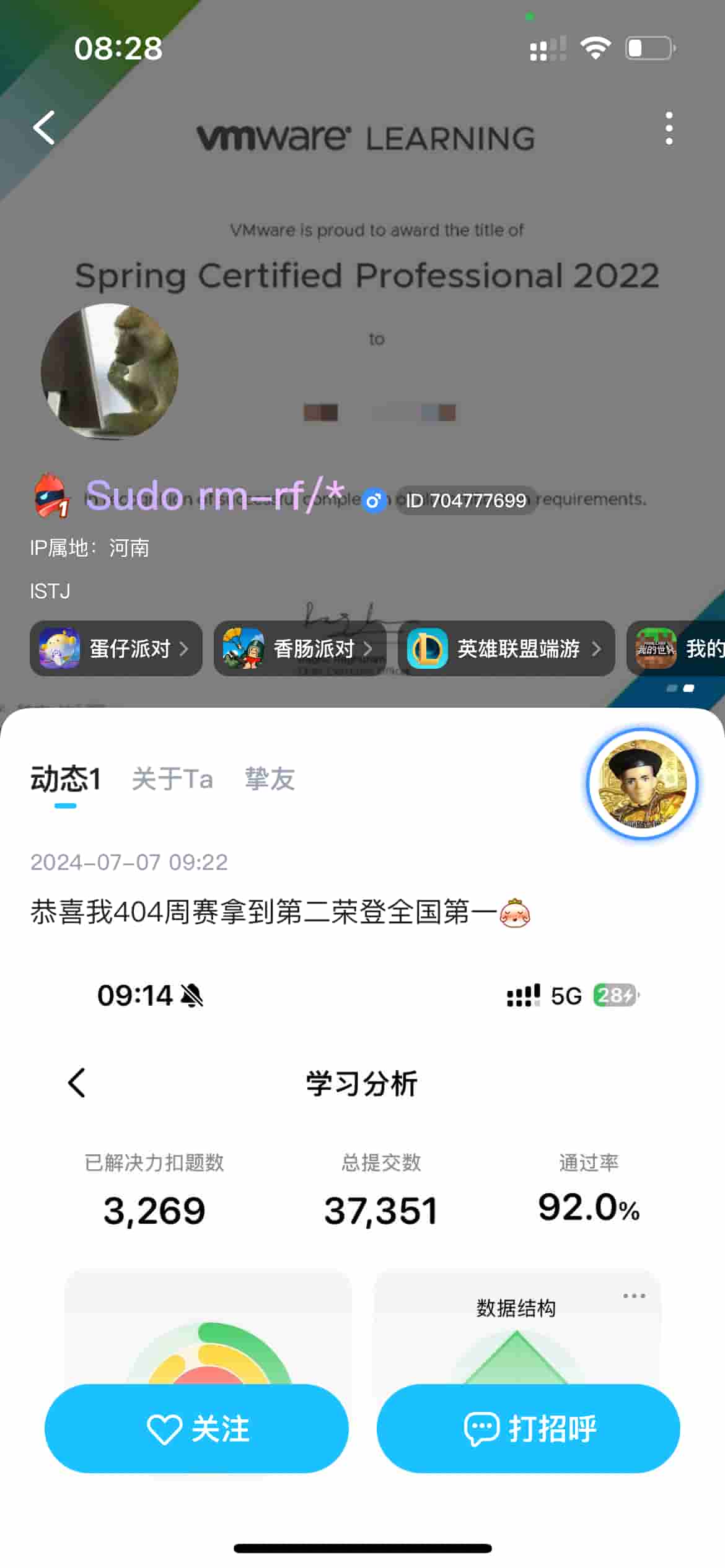 盗用他人LeetCode成绩在TT吹嘘,宣称自己LeetCode中国区第一,全球第三。被实锤拒不承认,然后火速删除动态。