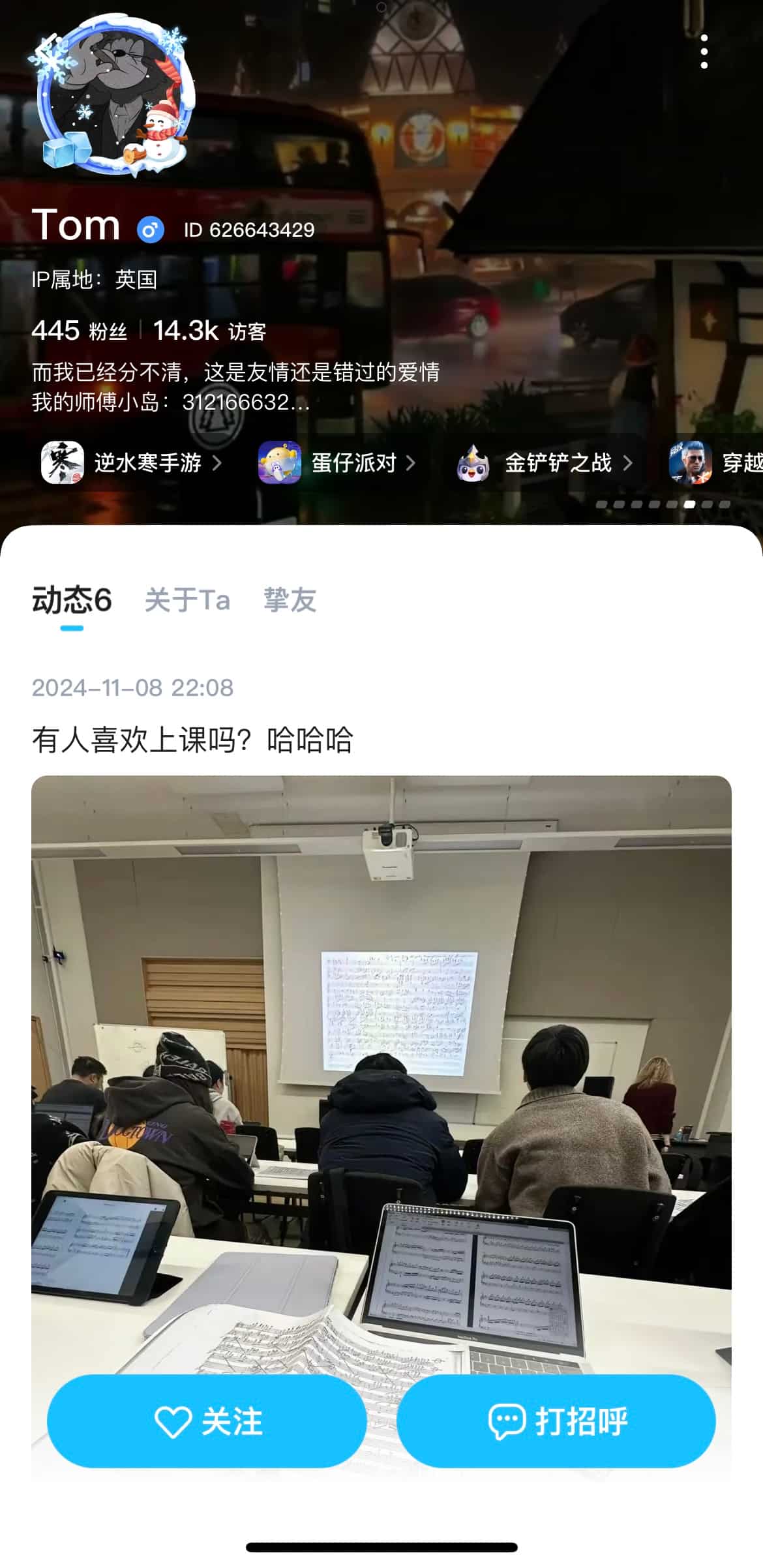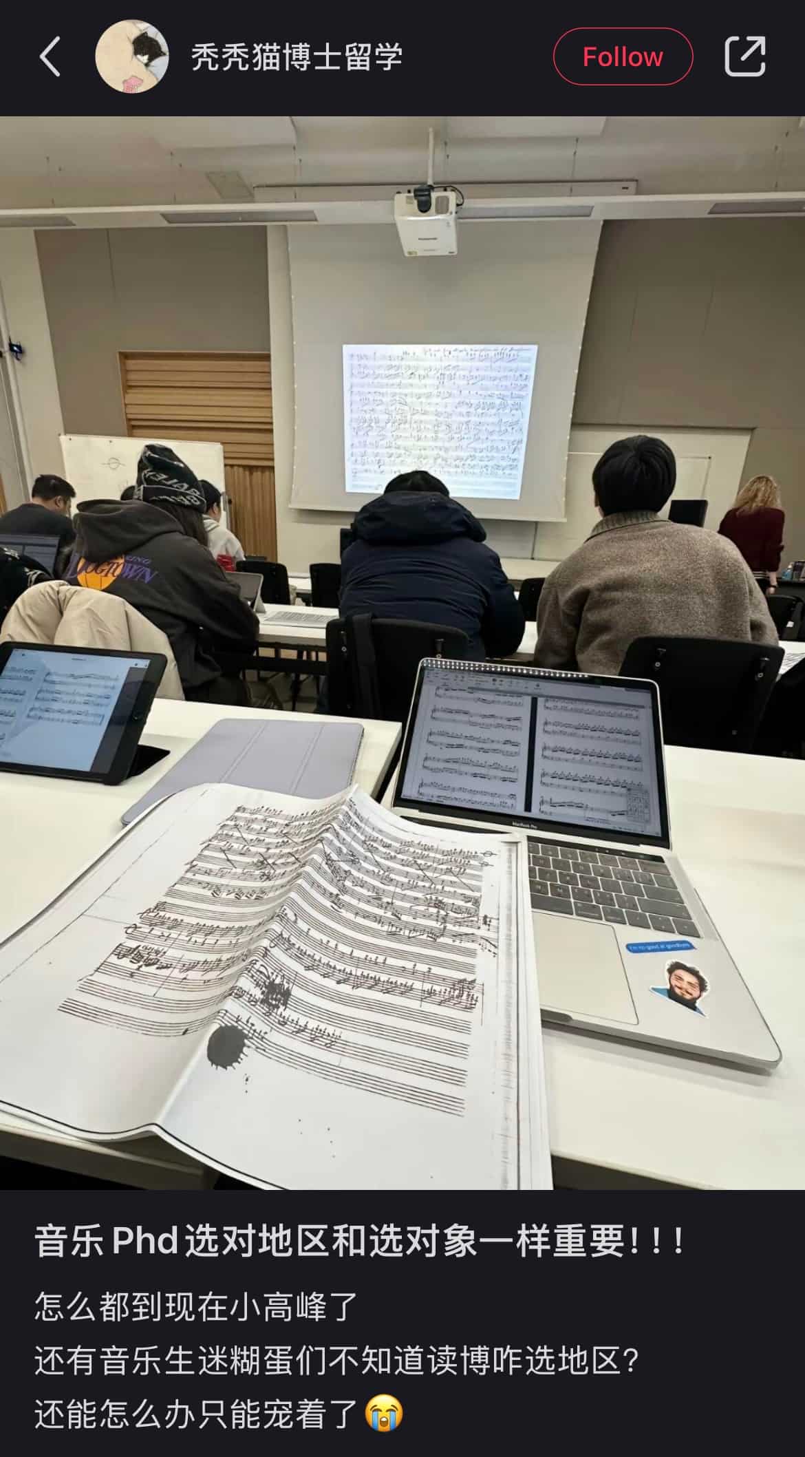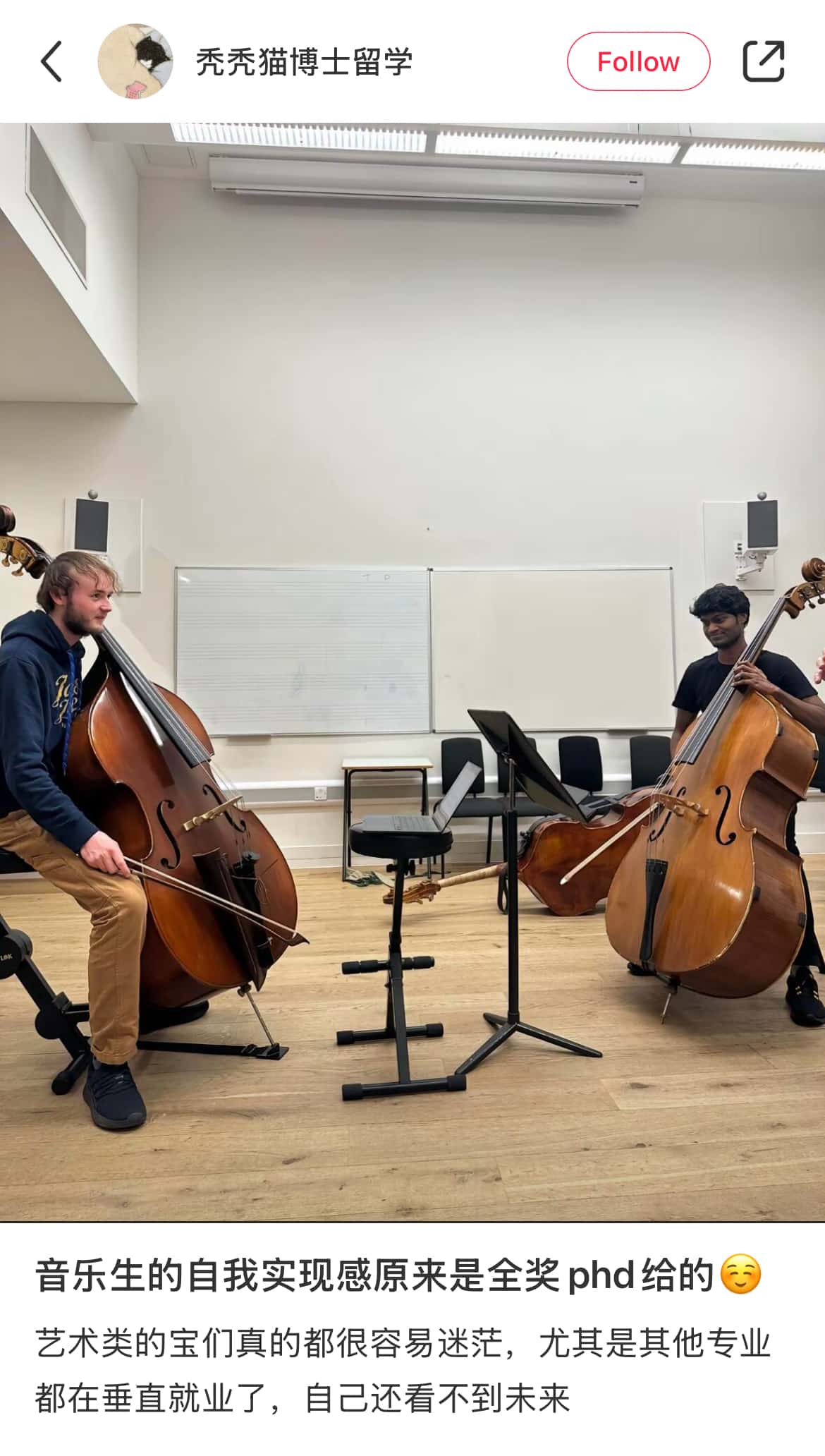 北方口音自称上海人,不会说上海话。在英国爱丁堡大学读音乐专业,毕业于美高。活跃于各个学习交流房,展示自己高贵的留学身份,不过动态的照片在某些平台找到了同款。