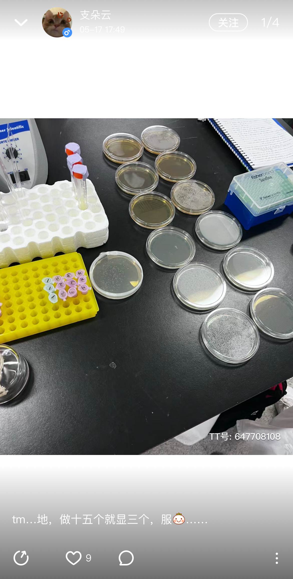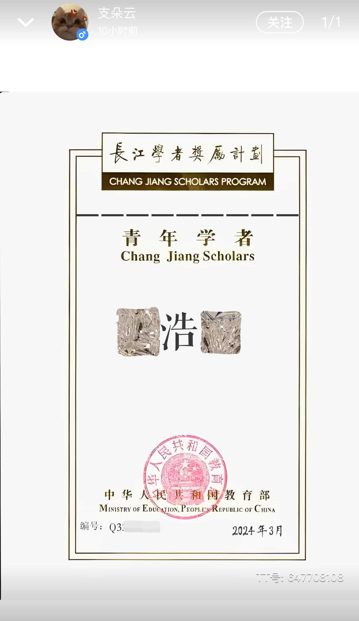 自称就读于中科大,目前大一,修应用数学和基础医学专业,还宣称只有青千才配和他说话。他自己应用数学专业大一只学一门课,公共课统统不学。大一就拿到了直博 MIT 的 offer,在长江学者奖励计划中被授予青年学者的荣誉称号。讲个笑话:我国最年轻的长江学者是 29 岁,他创造了新记录。他还自称大一就开始带研究生,结果动态里连做实验的图都是偷小红书的。