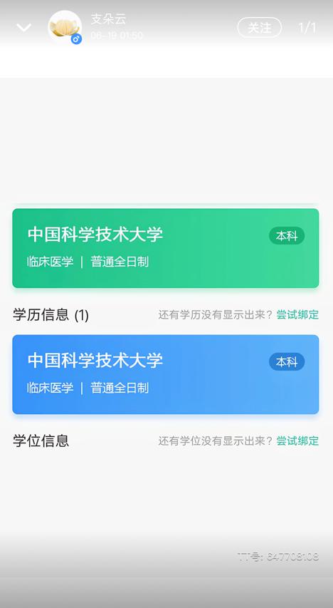 现在人设再次转变,变为中科大临床医学专业。专业一变再变,唯一不变的是对中科大的一片赤诚!